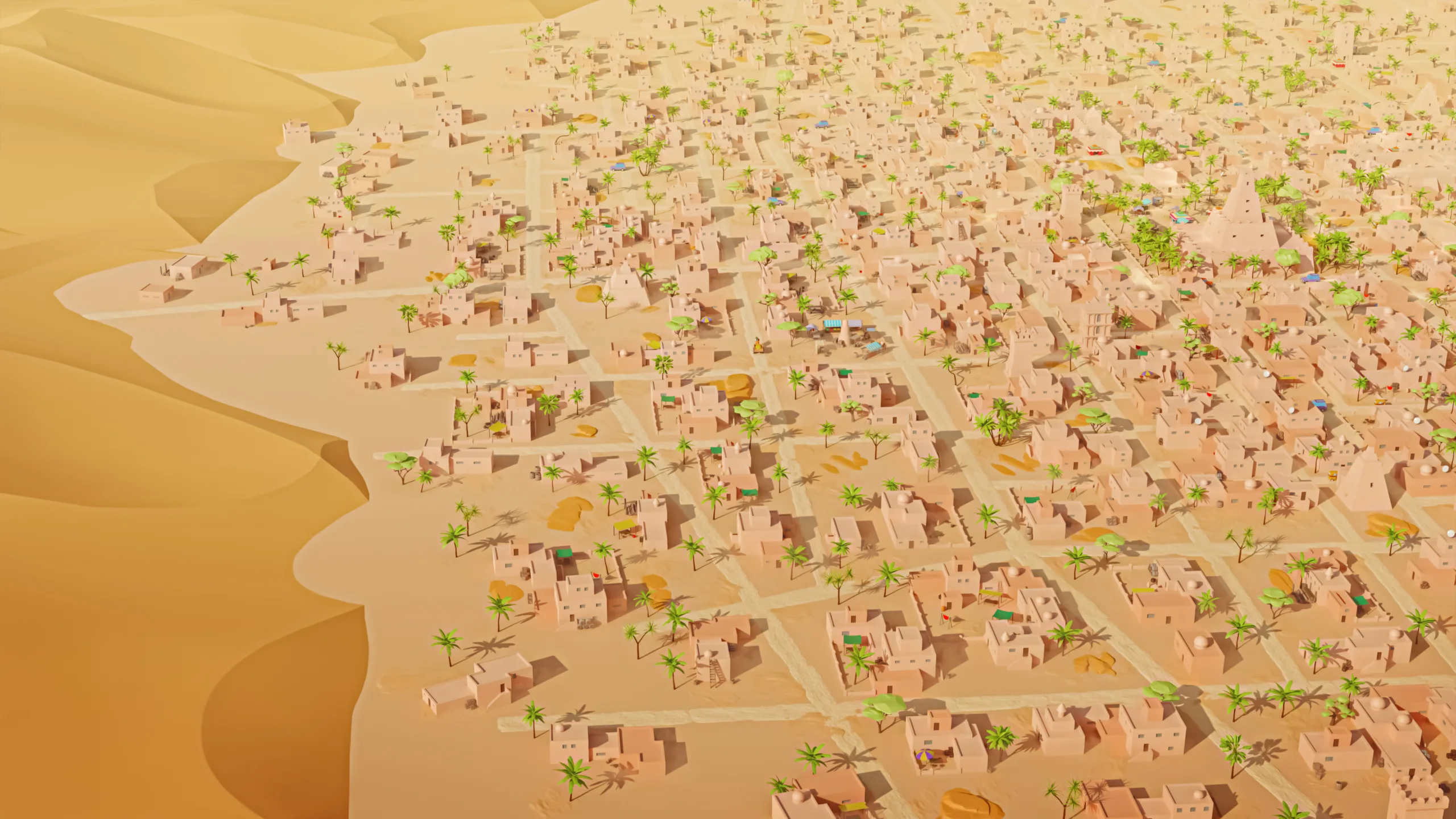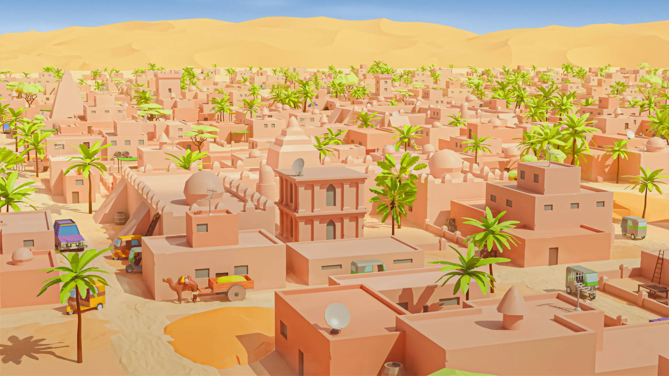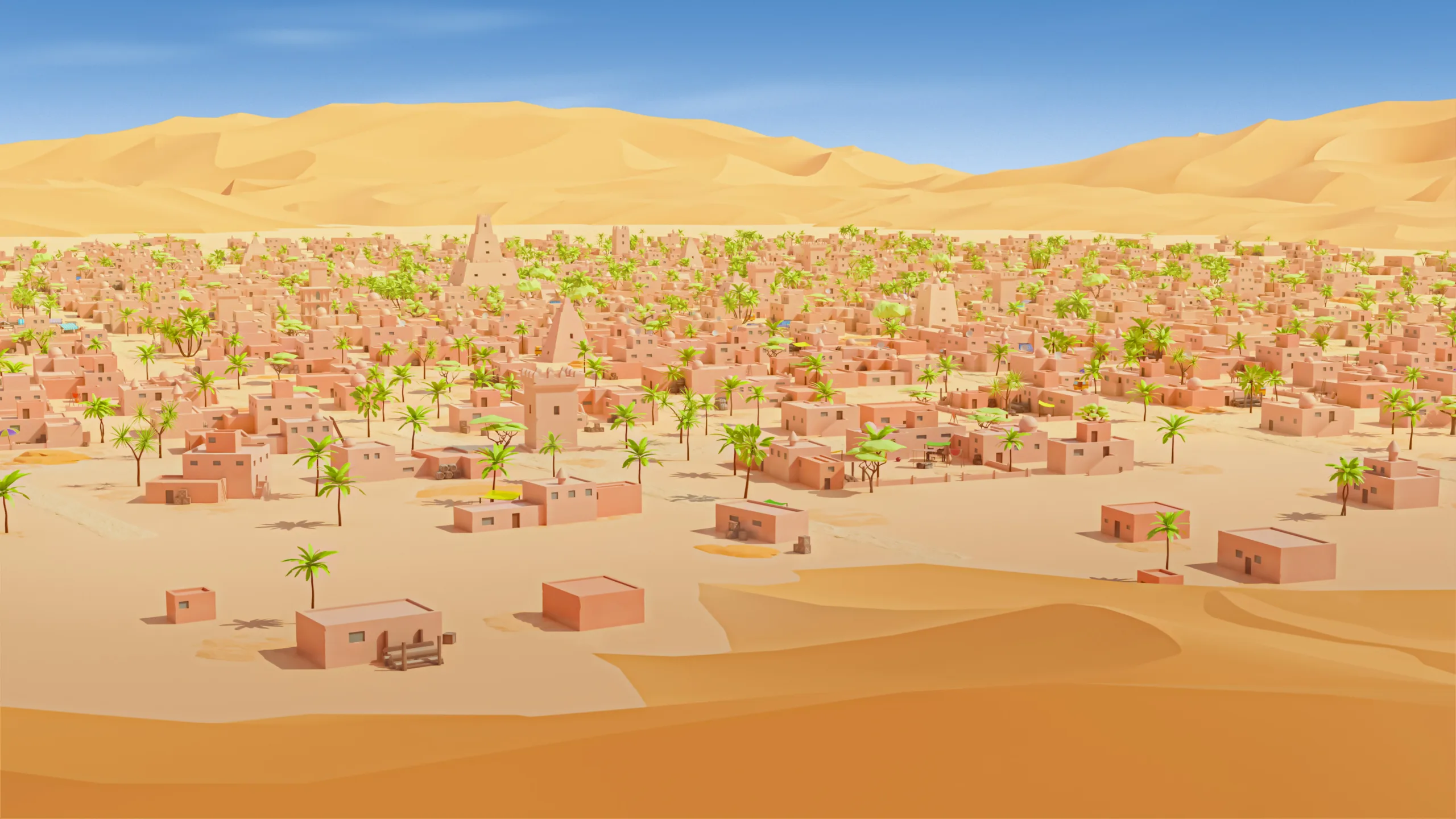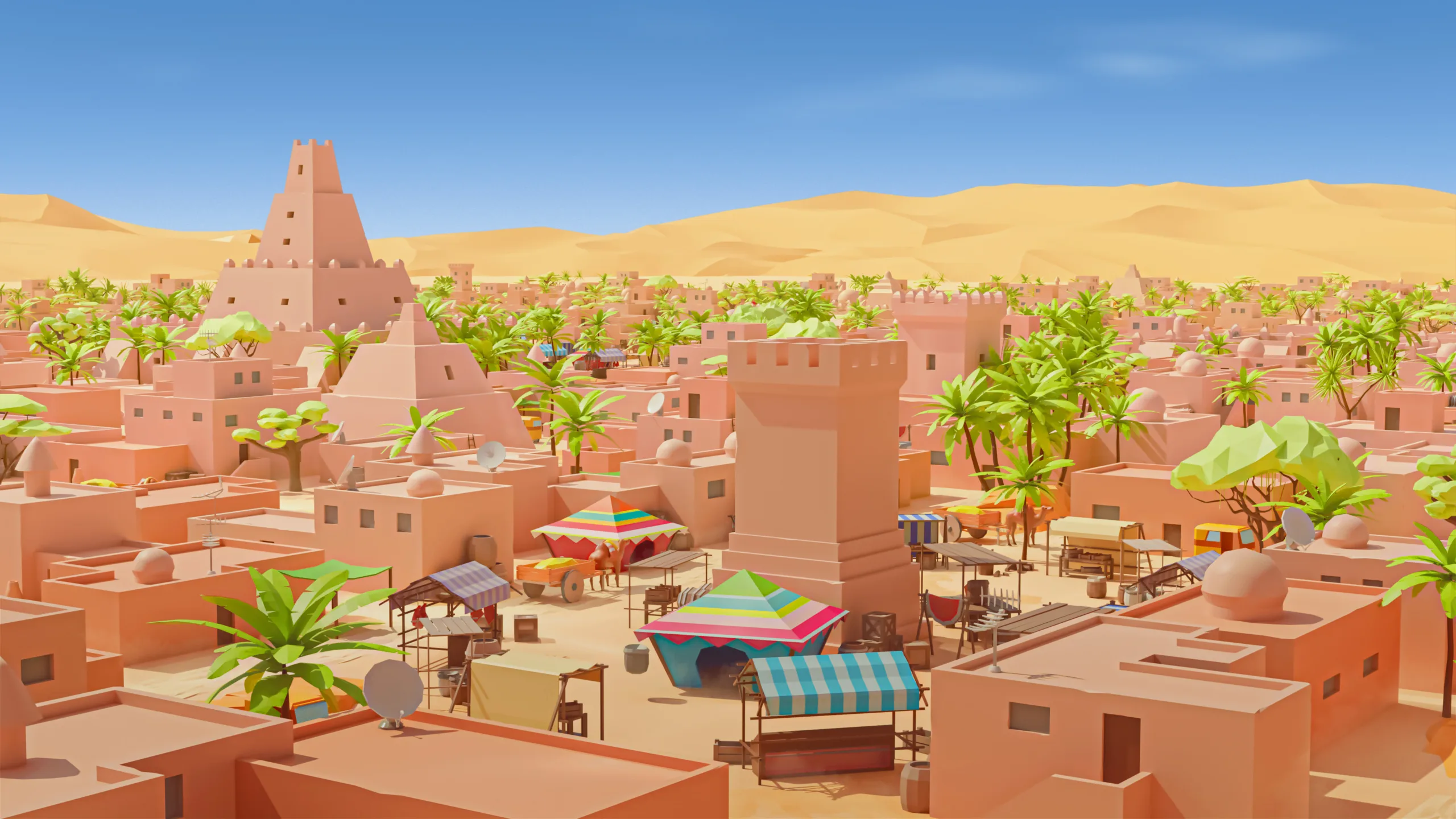 - 195 desert town 3D models that unlock boundless opportunities for creating unique locations. You can arrange landscapes and buildings the way you want and create your own, unique desert city.