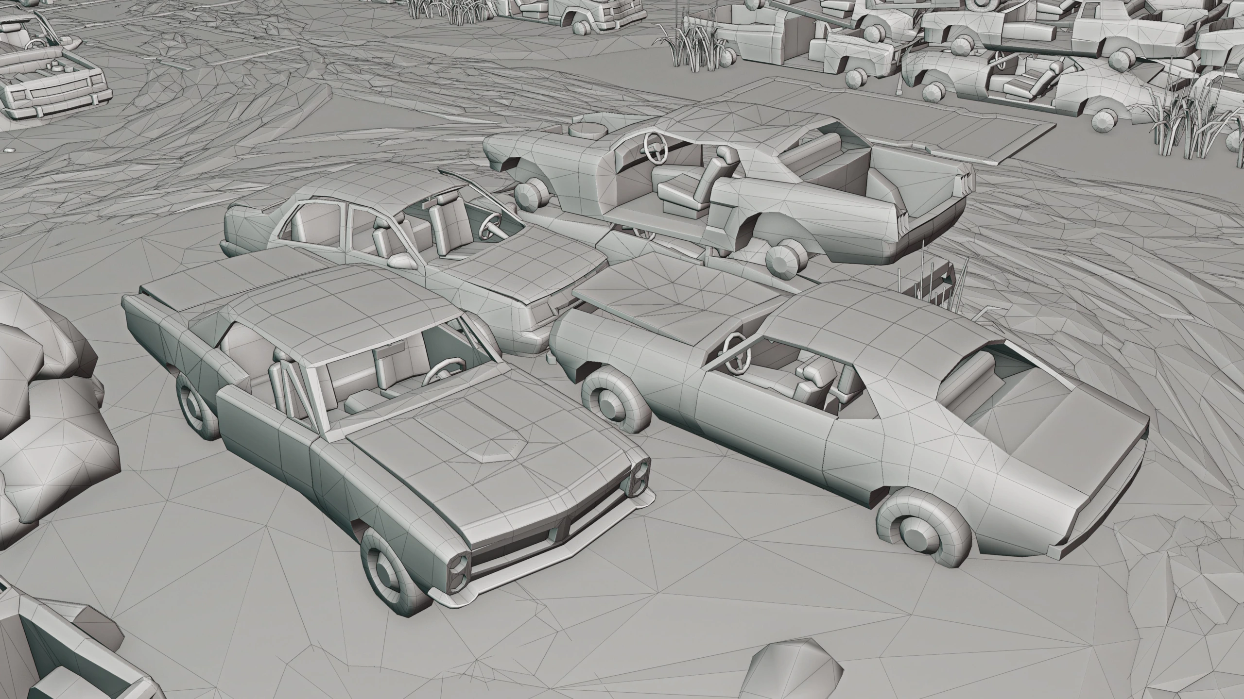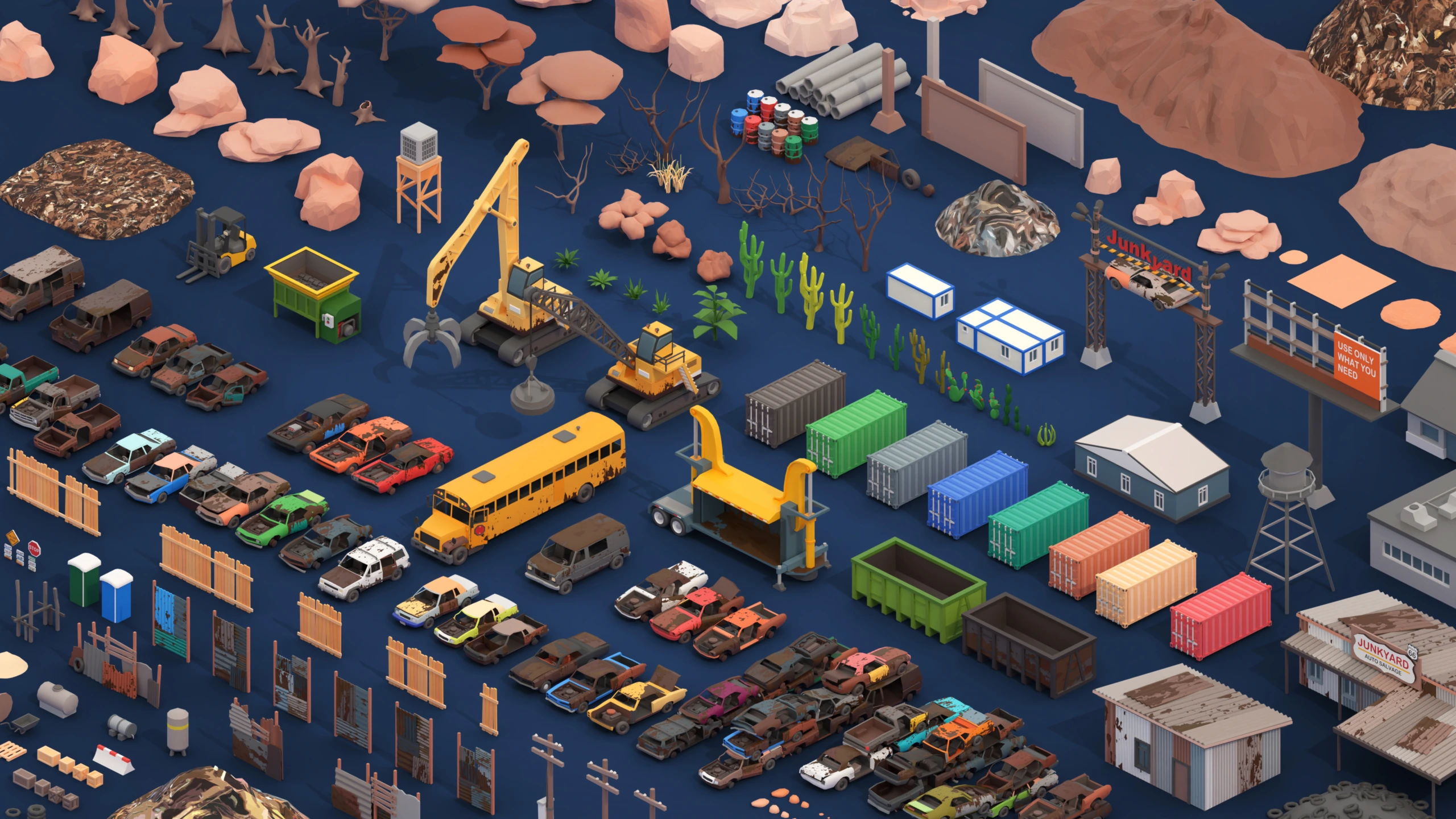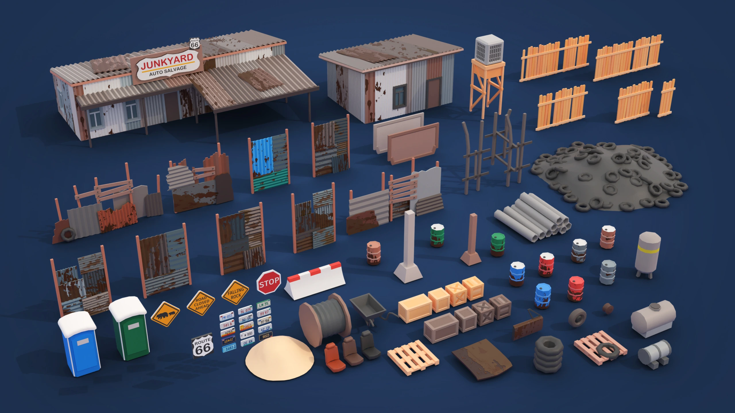 Transform your game environments with our comprehensive junkyard 3D model kit. Perfect for creating authentic post-apocalyptic wasteland scenes, industrial locations, and gritty urban environments. This model junkyard collection features over 290 carefully crafted assets, including detailed wrecked cars and authentic junkyard model cars.