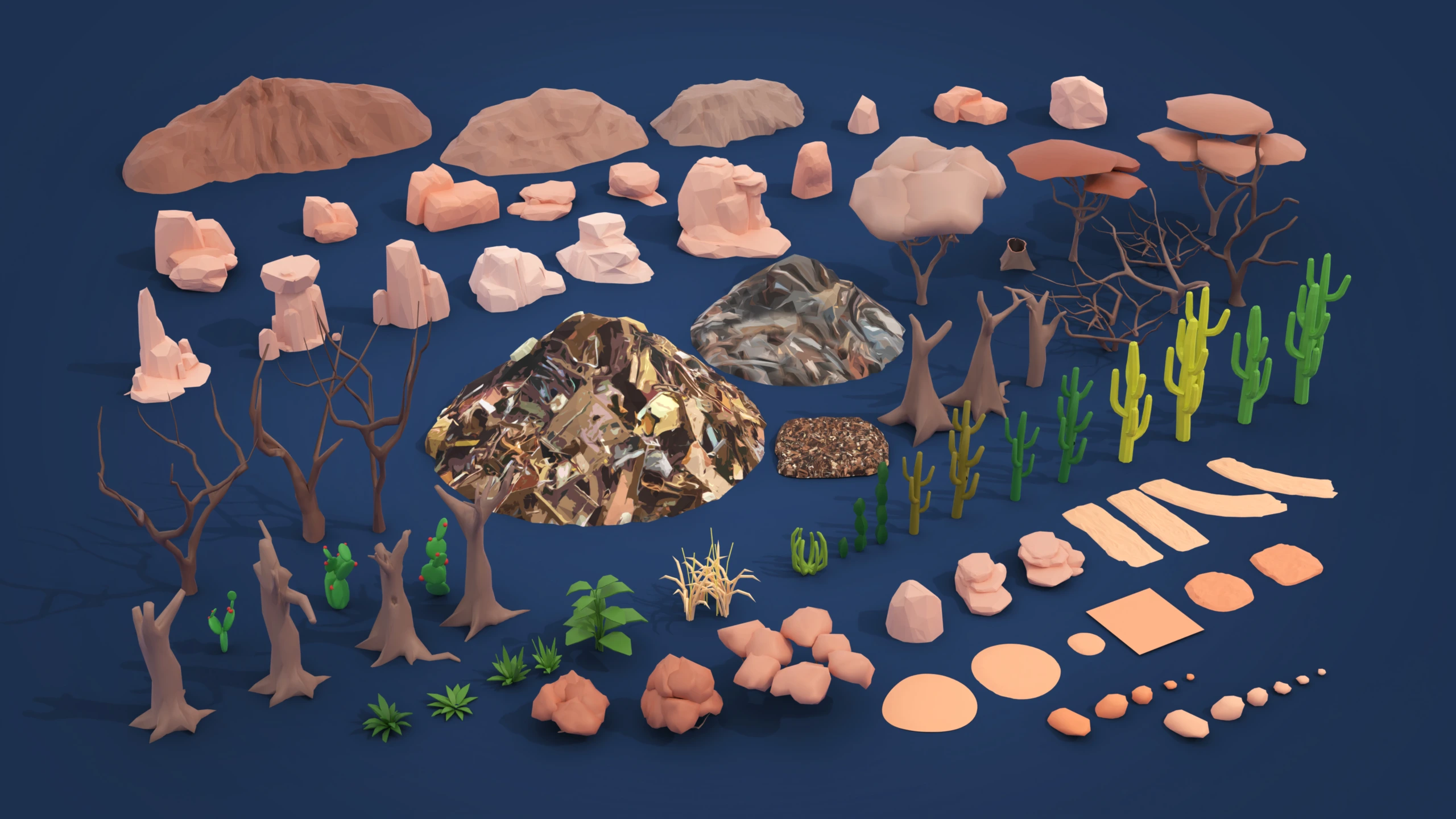 42 vegetation assets (deadwood, acacia, bush, cactus, grass)