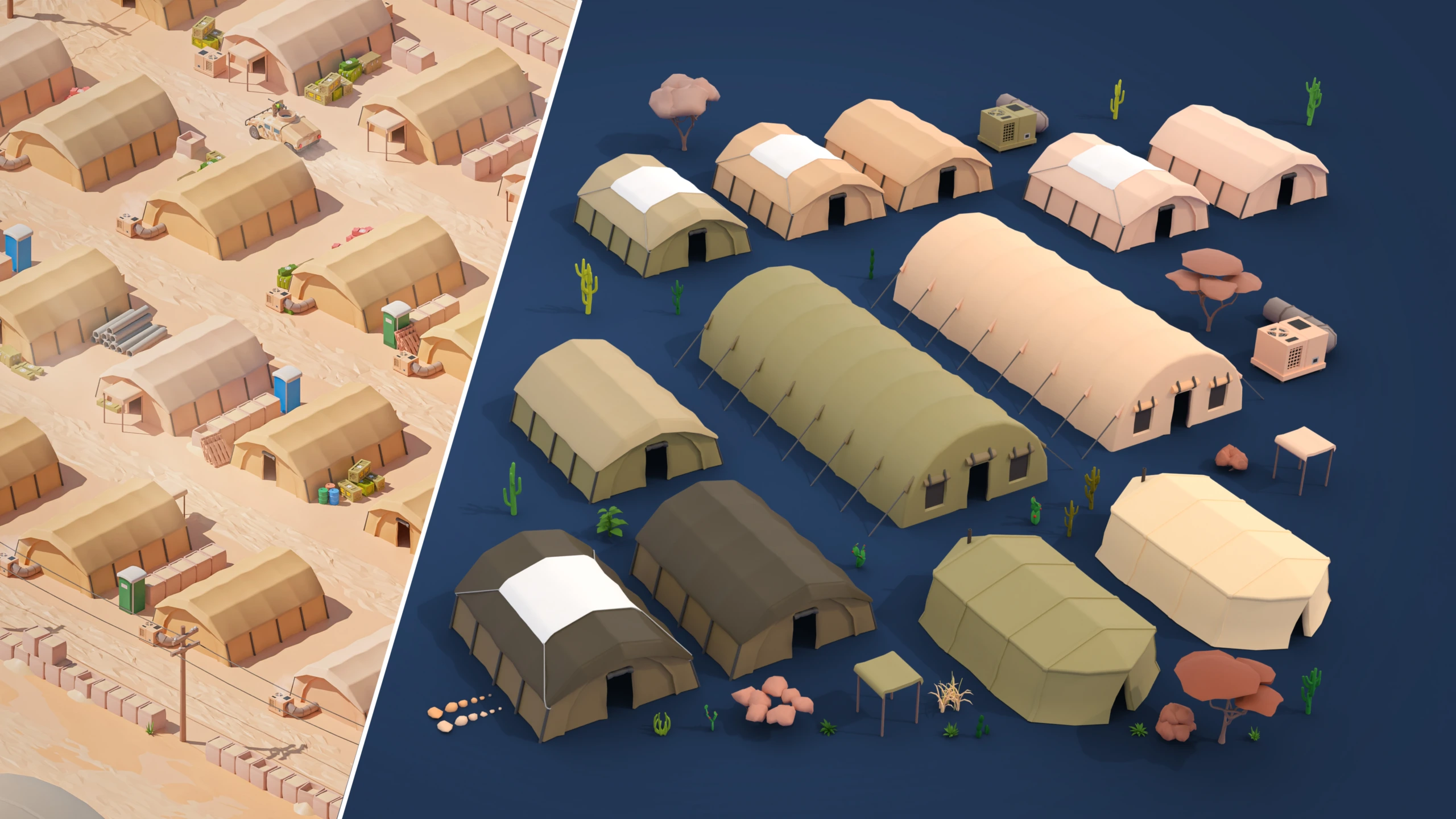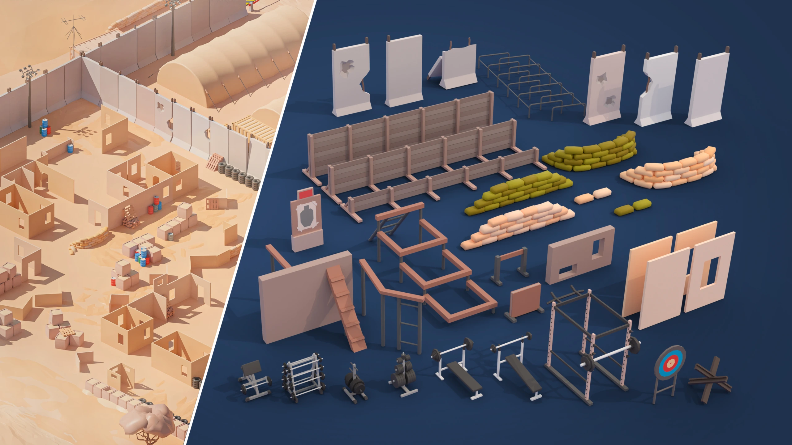 - 415 assets that offer limitless possibilities for creating unique locations. You can arrange landscapes, buildings, and structures in a way that makes the military location interesting and exciting.