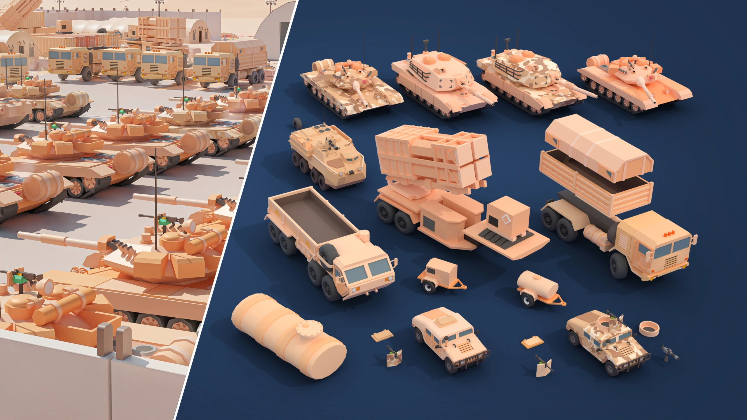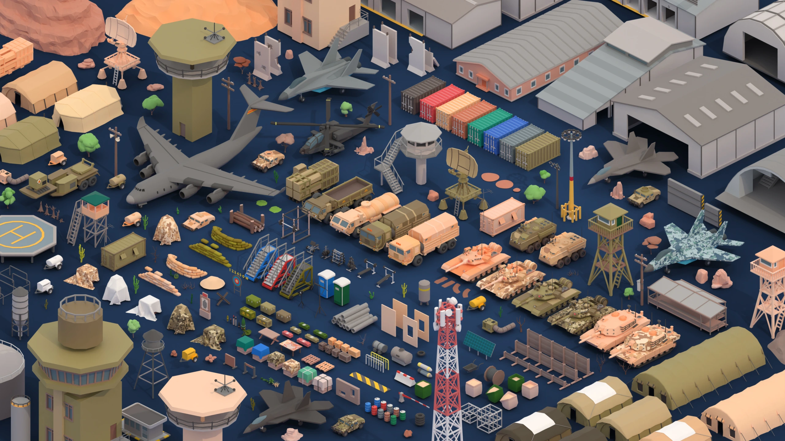 415 low-poly military models: