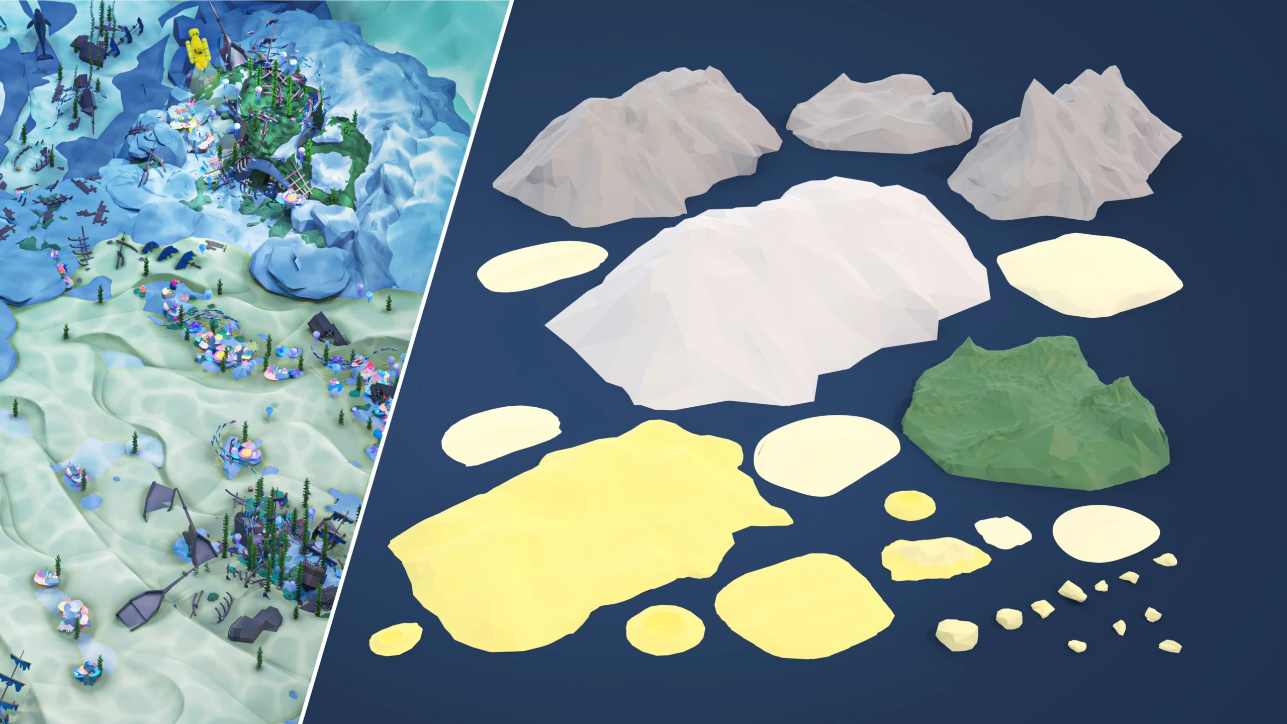 - 301 low poly underwater world assets that offer limitless possibilities for creating unique environment.