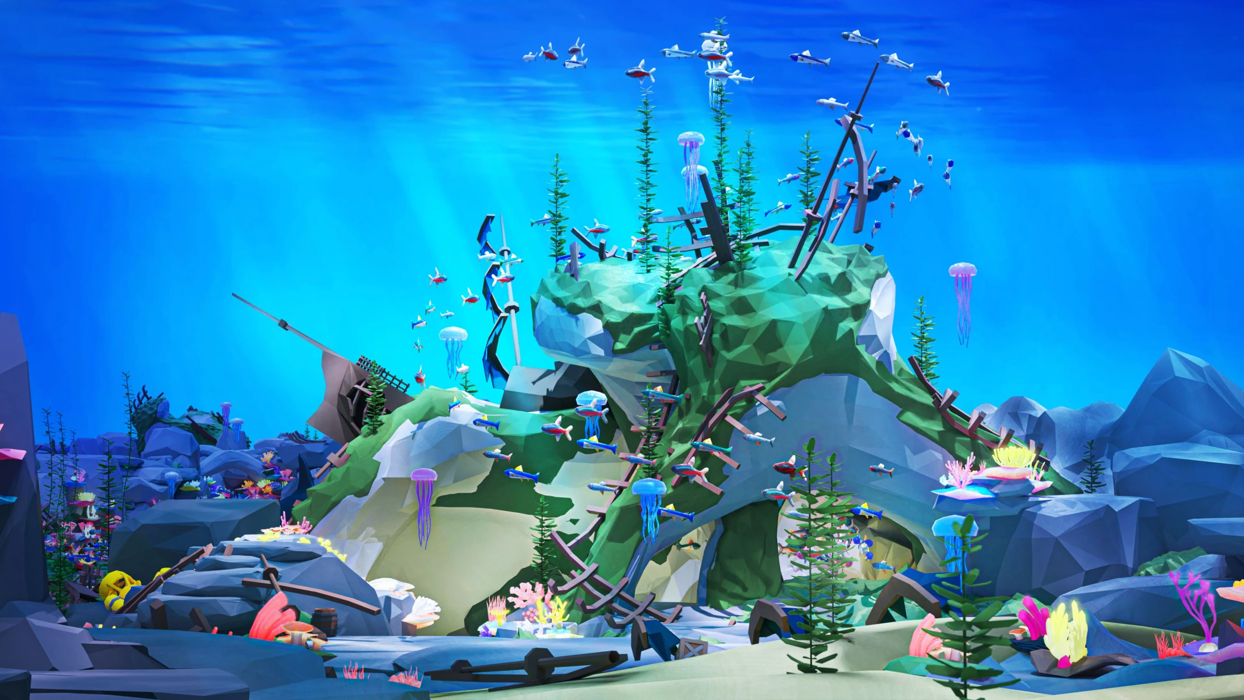 Explore the captivating realms of the Low Poly Underwater World with our comprehensive package of low-polygon 3D assets, tailored for game engines. Discover a vast collection of 301 meticulously crafted underwater world models, including landscapes, marine life, ships, and props, designed to breathe life into your underwater gaming environments.