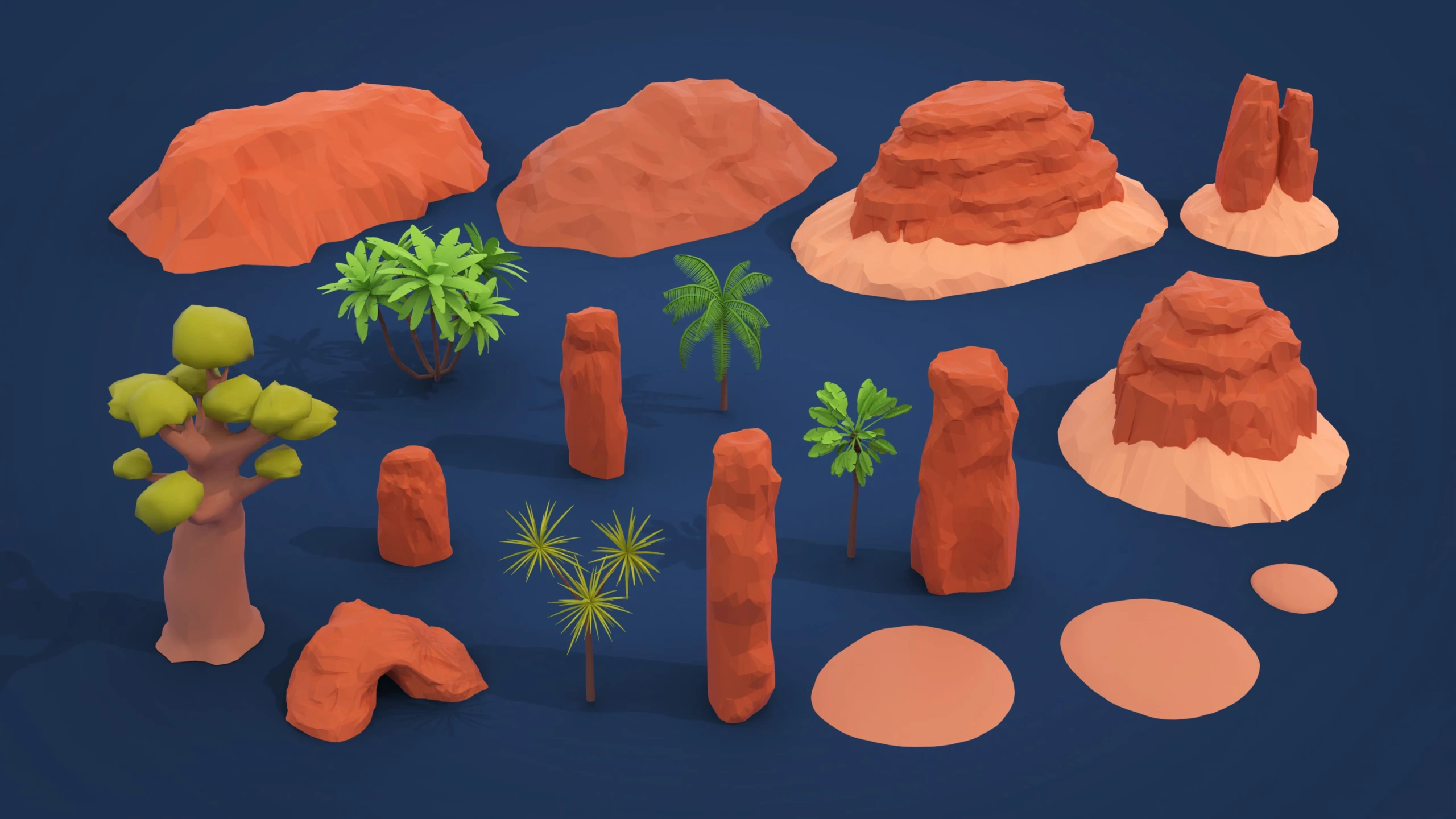 Palm, tree, bush, grass, cactus, baobab, dry tree trunk, branches, etc. - Wildlife (10 models)