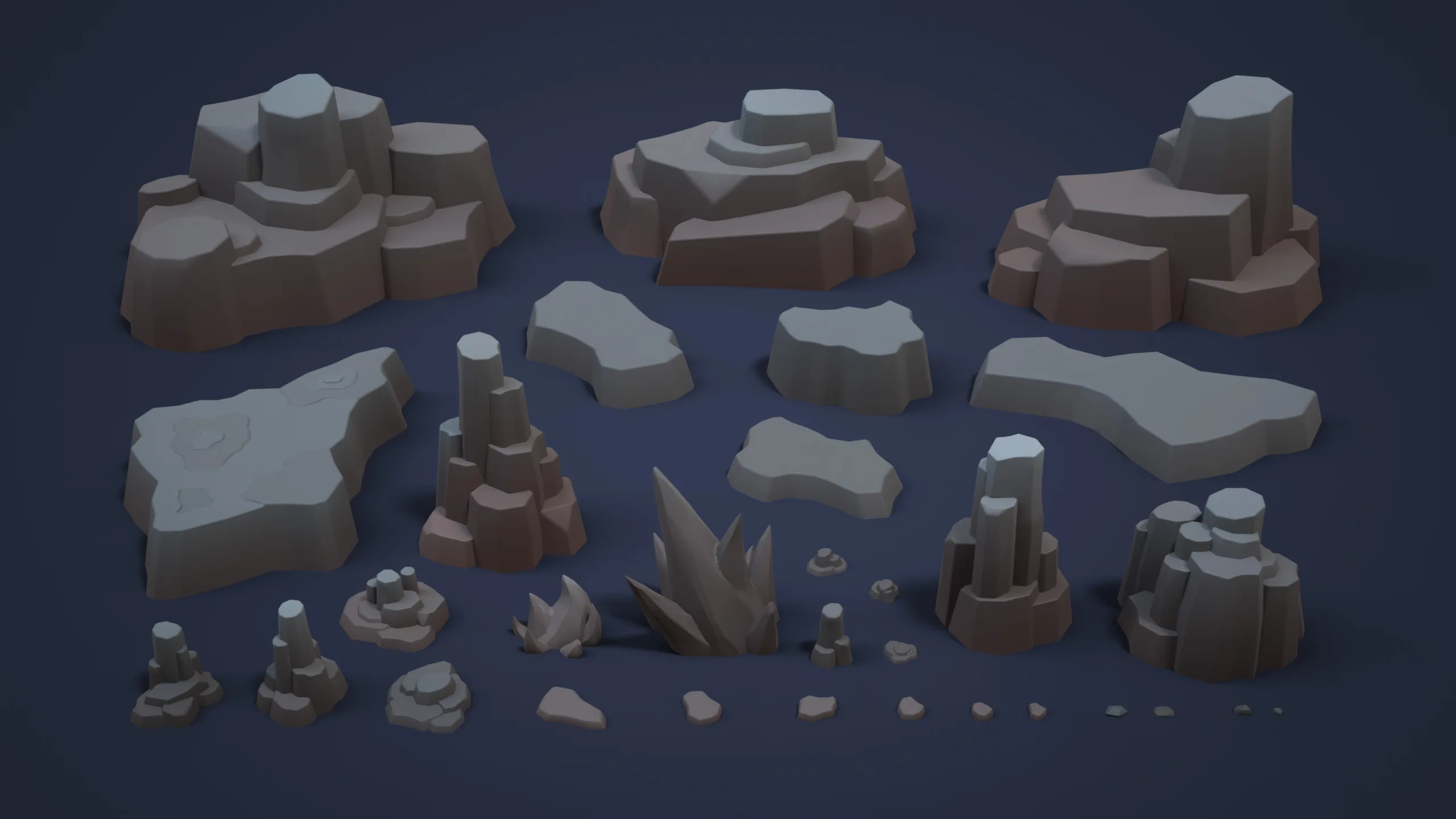Tall rock formations, spiked rocks, layered rock stacks, small scattered rocks, flat rock pieces. - Props (x24)
