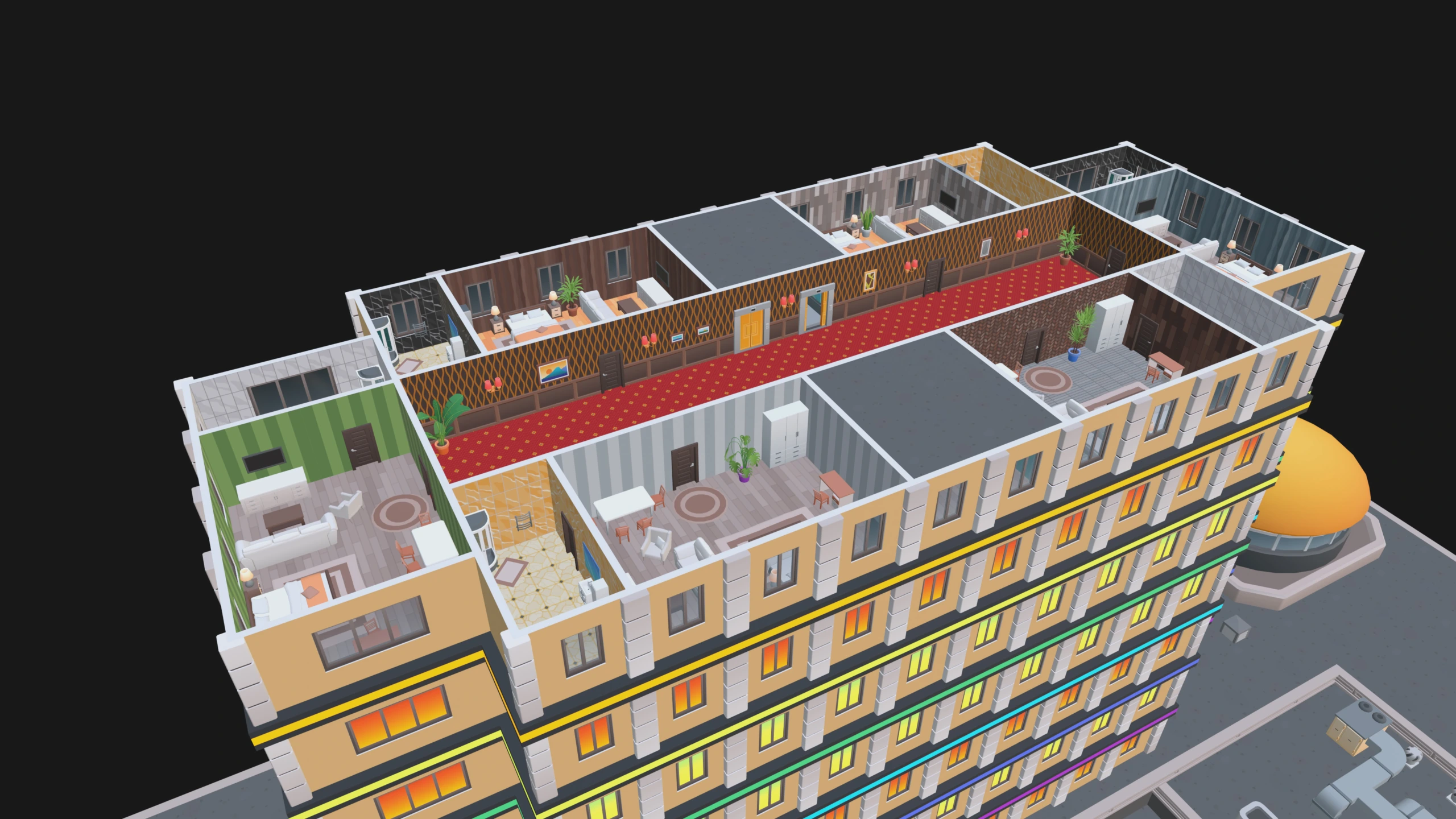 Separate hotel building with modular system. Create and customize rooms to house virtual guests and expand gameplay.