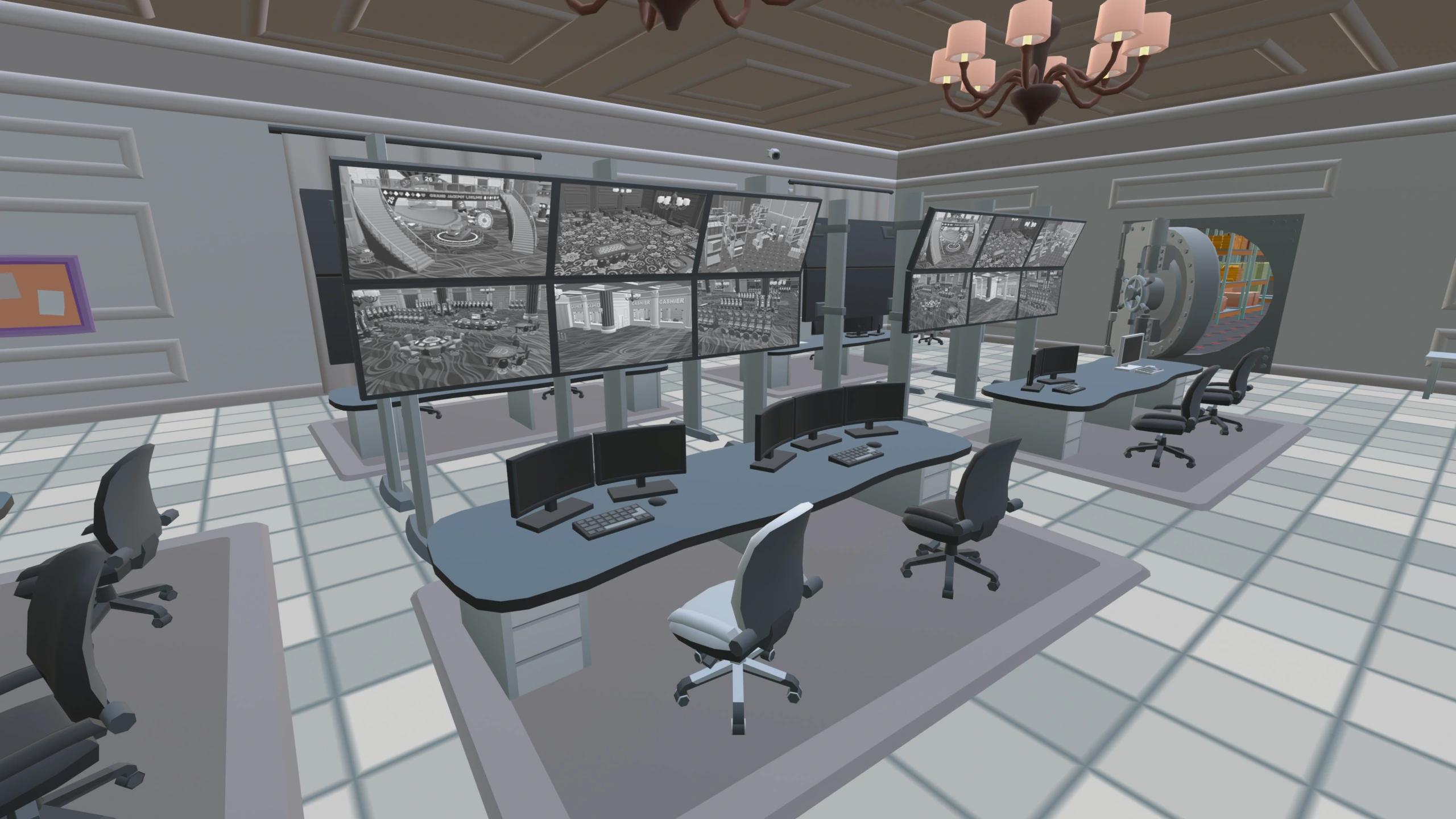 Beyond the gaming floor: reception, cloakroom, cashier, bar, VIP lounge, storage, restrooms, vault, security room, kitchen, and performance stage. - Camera Versatility