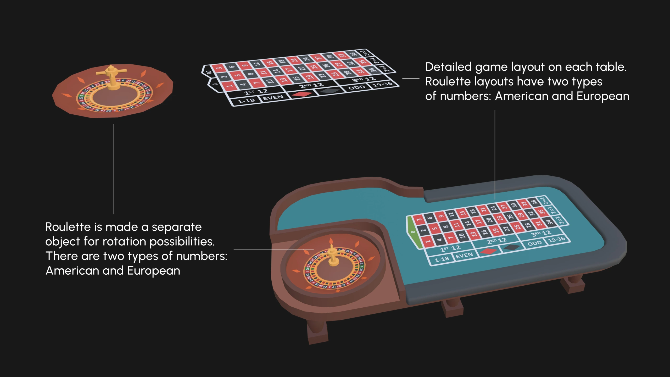 Each table features authentic layouts and play areas that follow casino rules. - Gaming Props