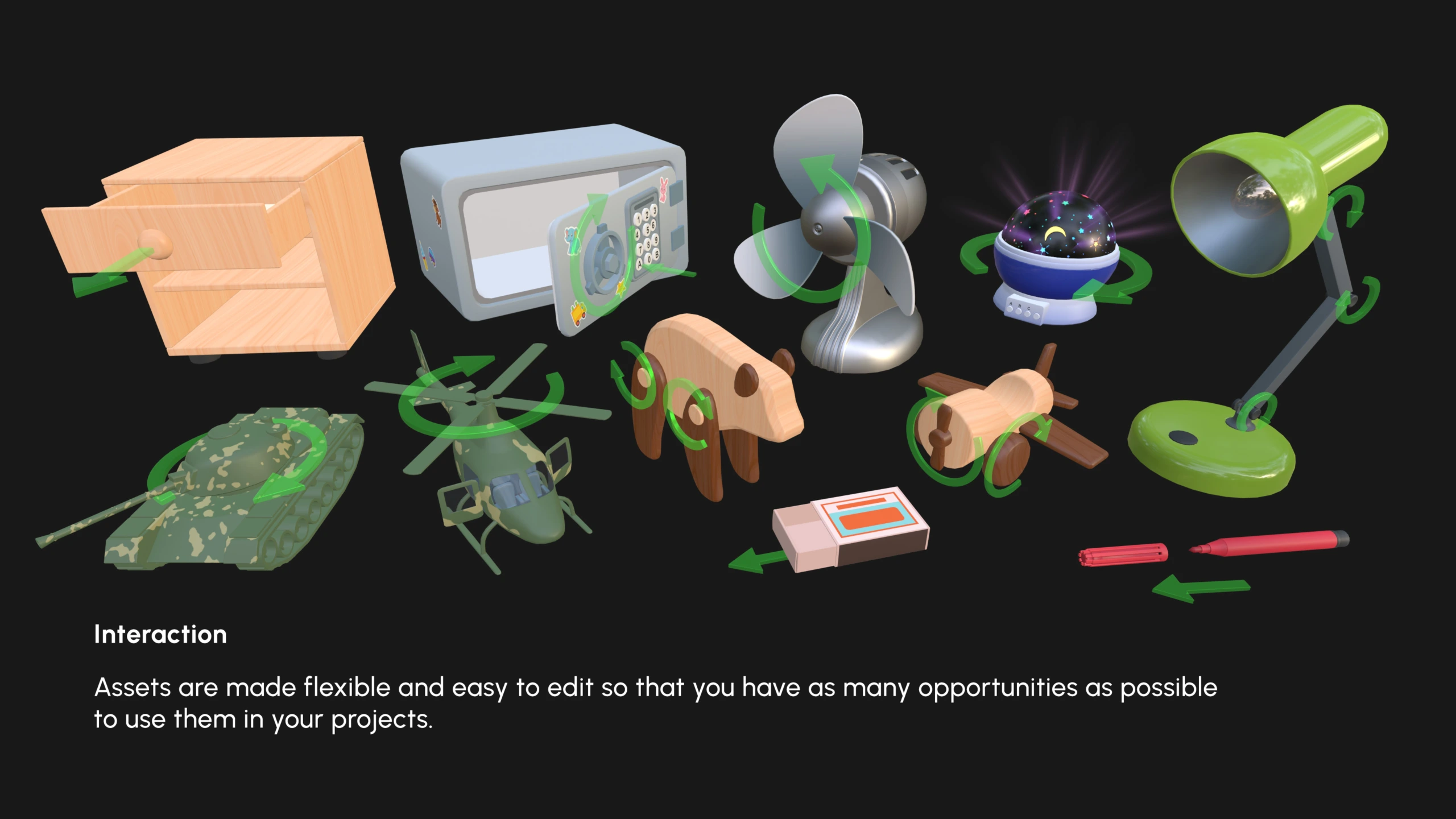 Every object is carefully scaled for gameplay. This ensures the perfect balance between realistic proportions and comfortable play experience. - Animated Characters