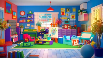 Furniture Bright – A vibrant cartoon style with rich, contrasting colors.