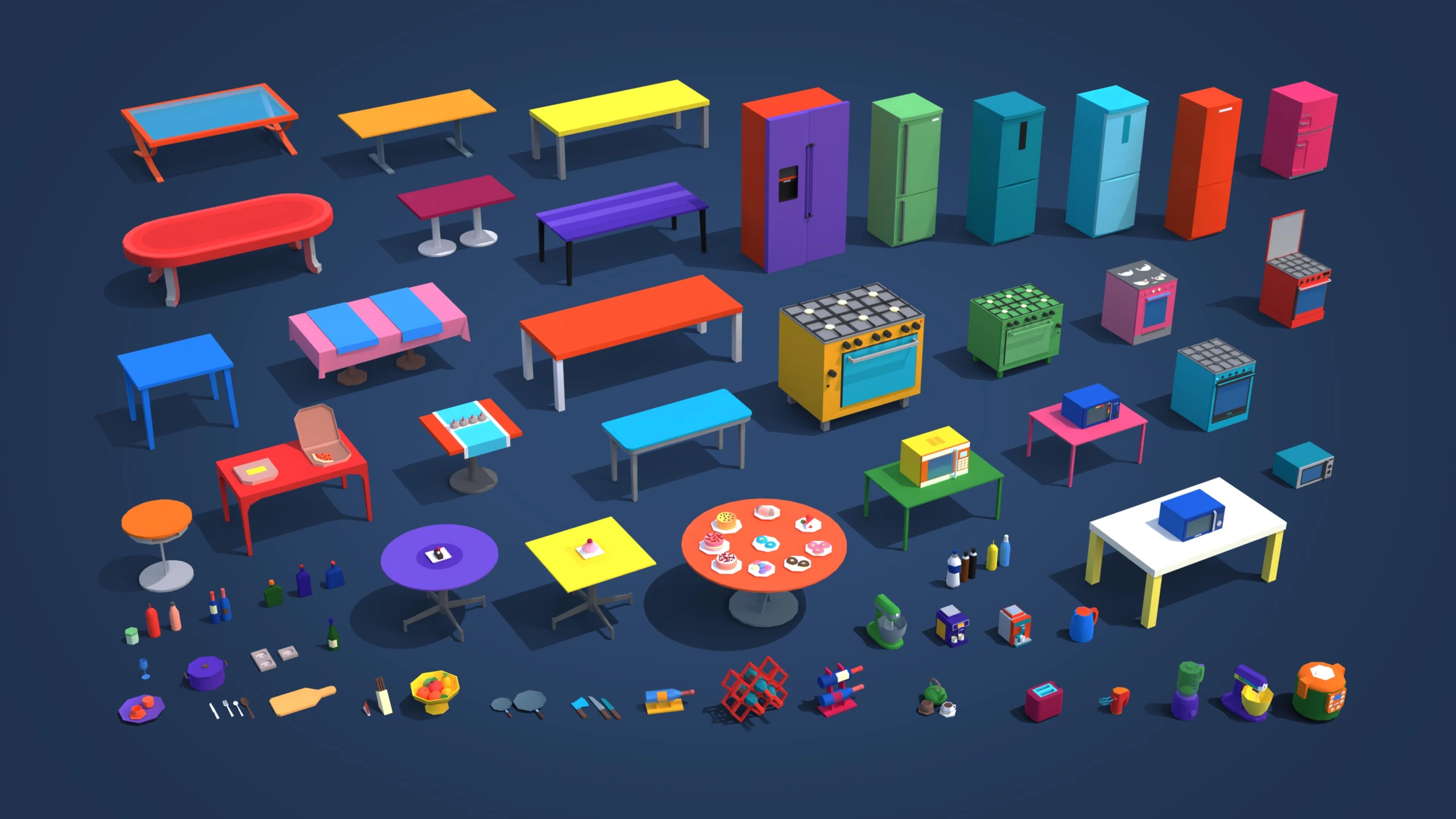 - Consistent art style: Almost all of our asset packs are stylistically compatible. Check out our interior packages and Casual Food package.