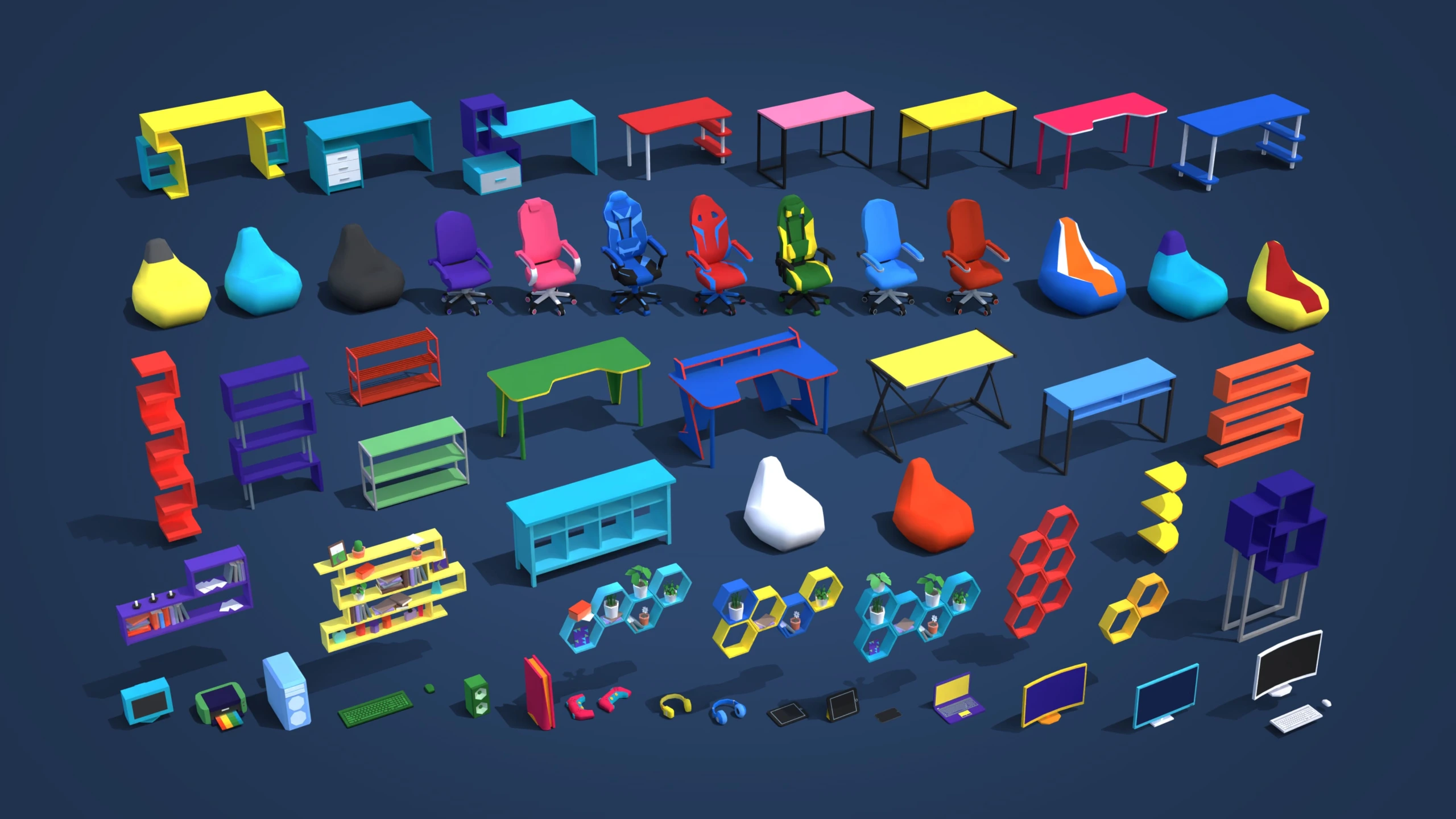 Furniture Bright is a comprehensive pack of bright low poly furniture 3D models with a casual style, optimized for game engines, consisting of 1391 unique assets. With the help of this furniture low poly pack, you can build from scratch or transform any interior! Experience the quality with our free Furniture demo (include only 40 assets).