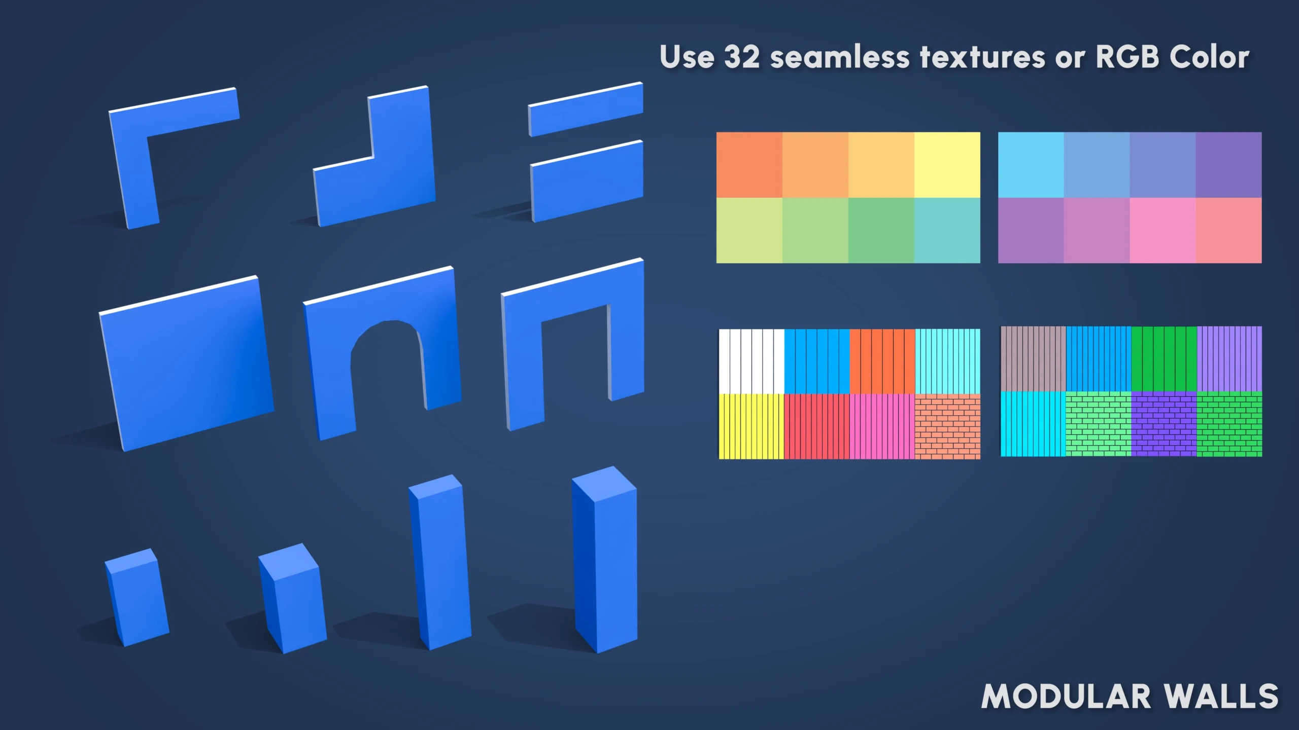 - 12 Wall Elements: Wall, beam, arch, doorway, slab