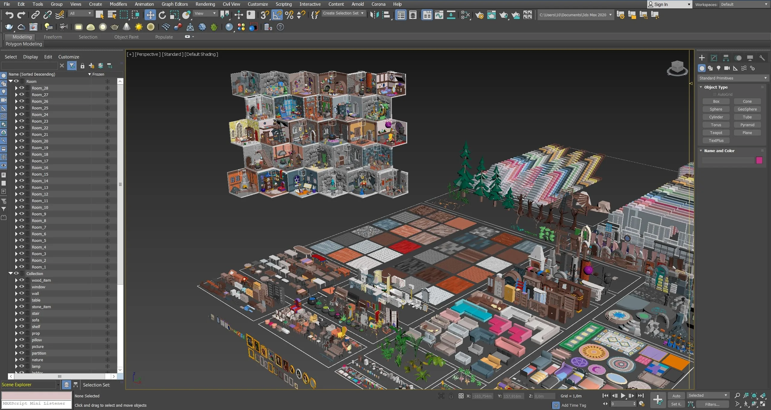 28 prepared rooms contain 1797 low poly magic room models: