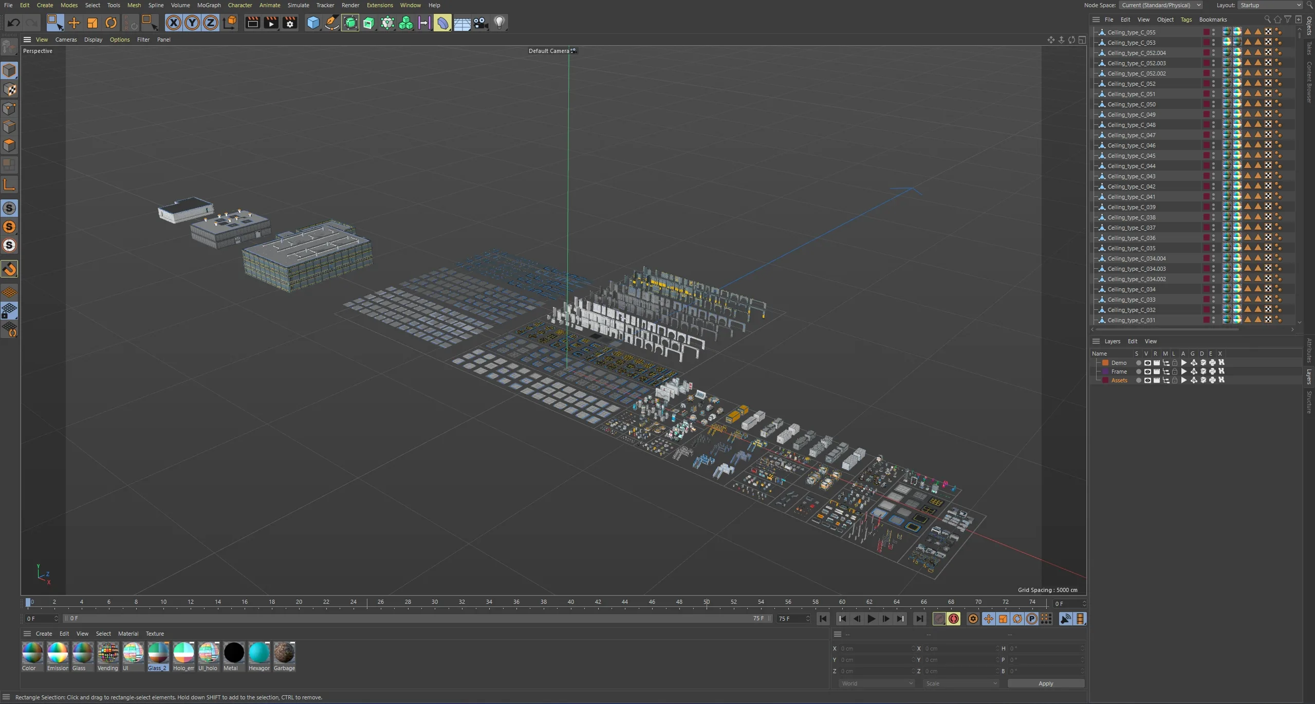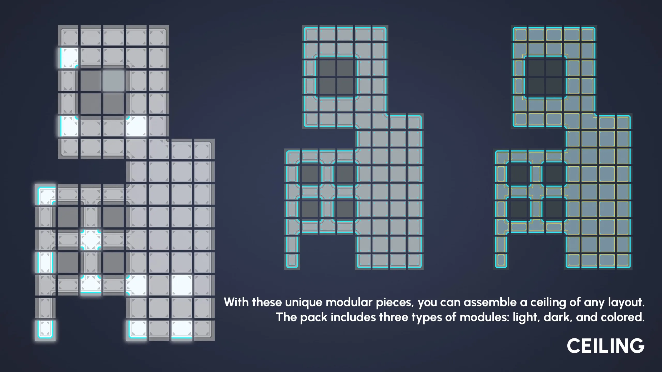 Three color variations of modular ceilings with all necessary pieces to assemble layouts of any type. Models include light sources for visually engaging environments. - Walls (x221)