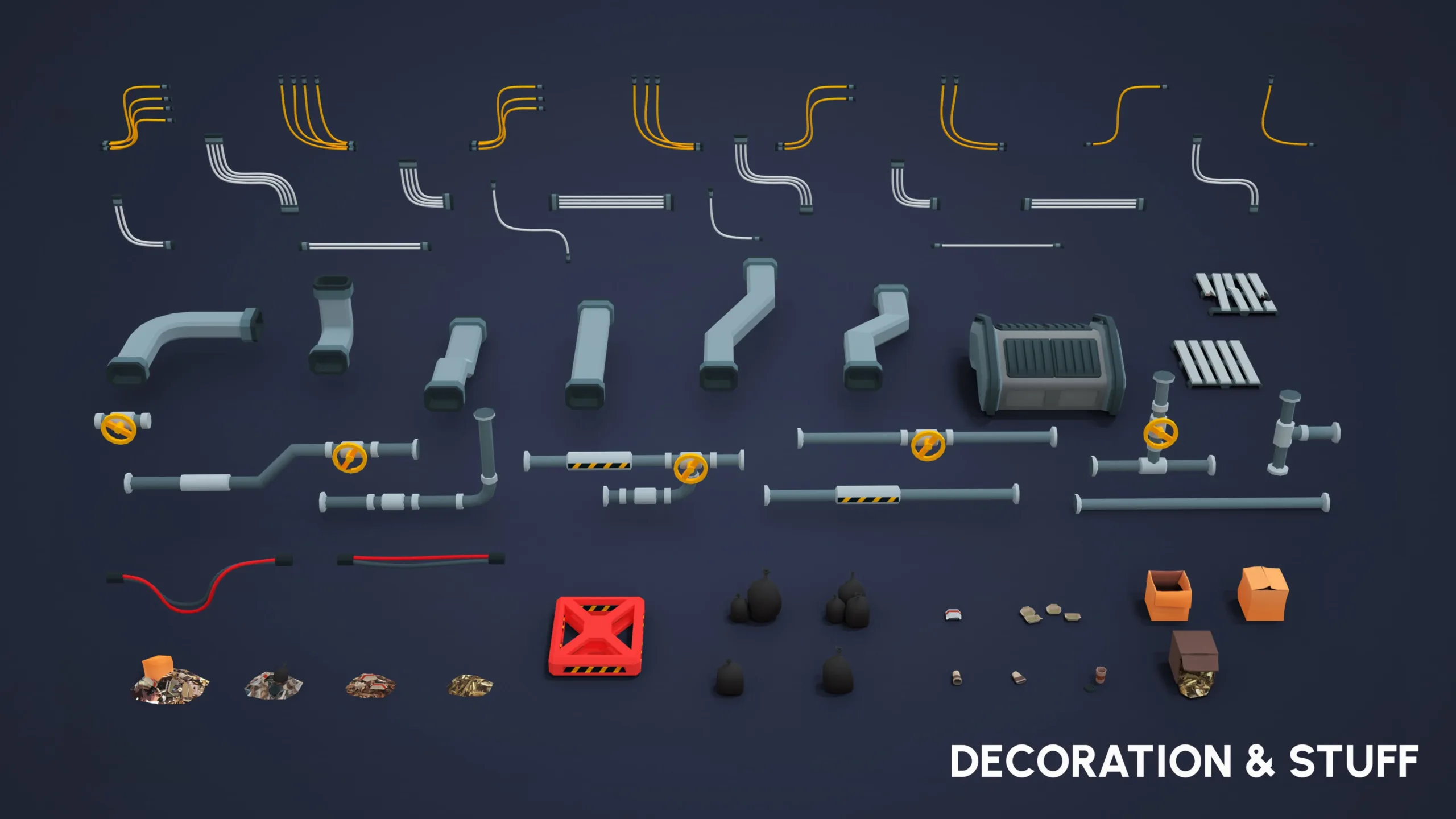 - Over 1080 Assets. The pack includes interactive and modular models that can be assembled from multiple 3D parts – separate doors, hatches, rotating and pivoting elements. The collection covers all essential object categories to help you easily create interiors and complete game levels. All models are built with realistic proportions, making them suitable for first-person, third-person, 2D/2.5D, isometric, and top-down games.