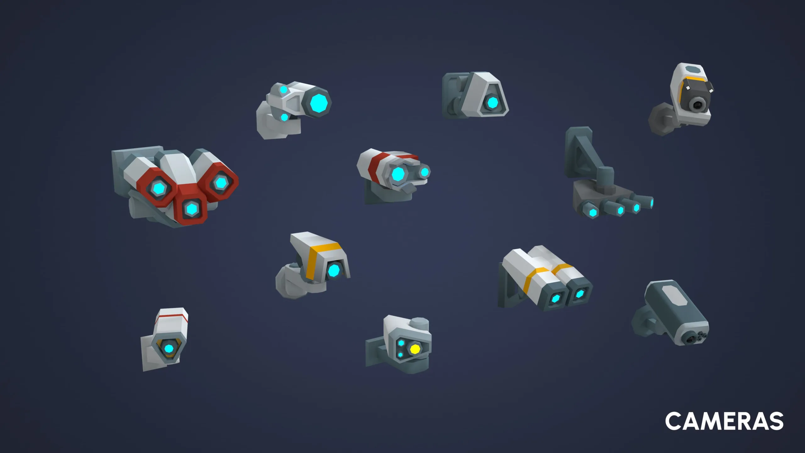 Types include machine gun, cannon, laser, rocket, sonic, gauss, and drone-based. Includes projectiles and containers. Equipped with multiple joints for rotation. - Containers (x16)