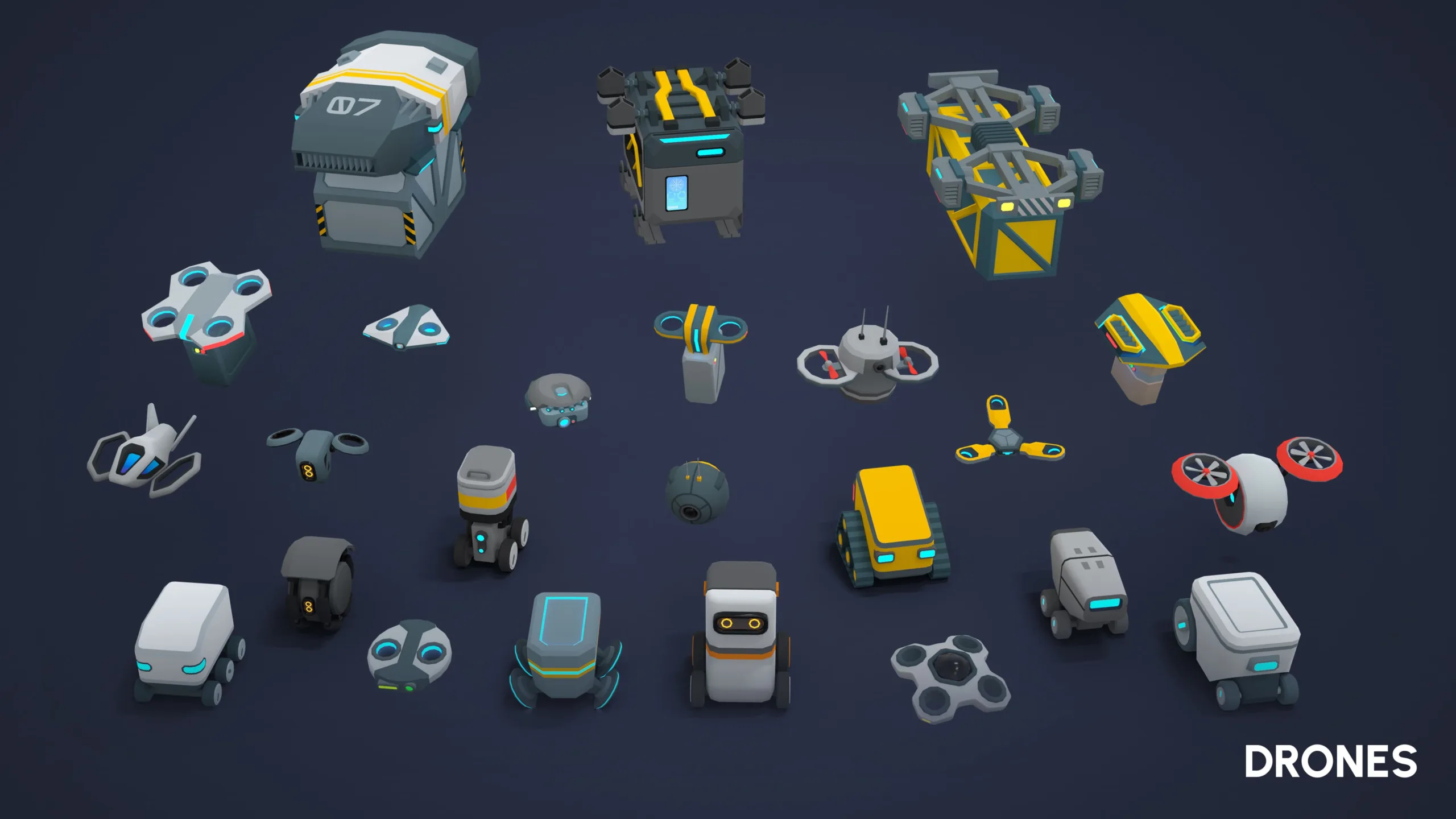 Cargo, flying, and wheeled drones with moving elements, turbines, wheels, and mounts. - Turret (x88)