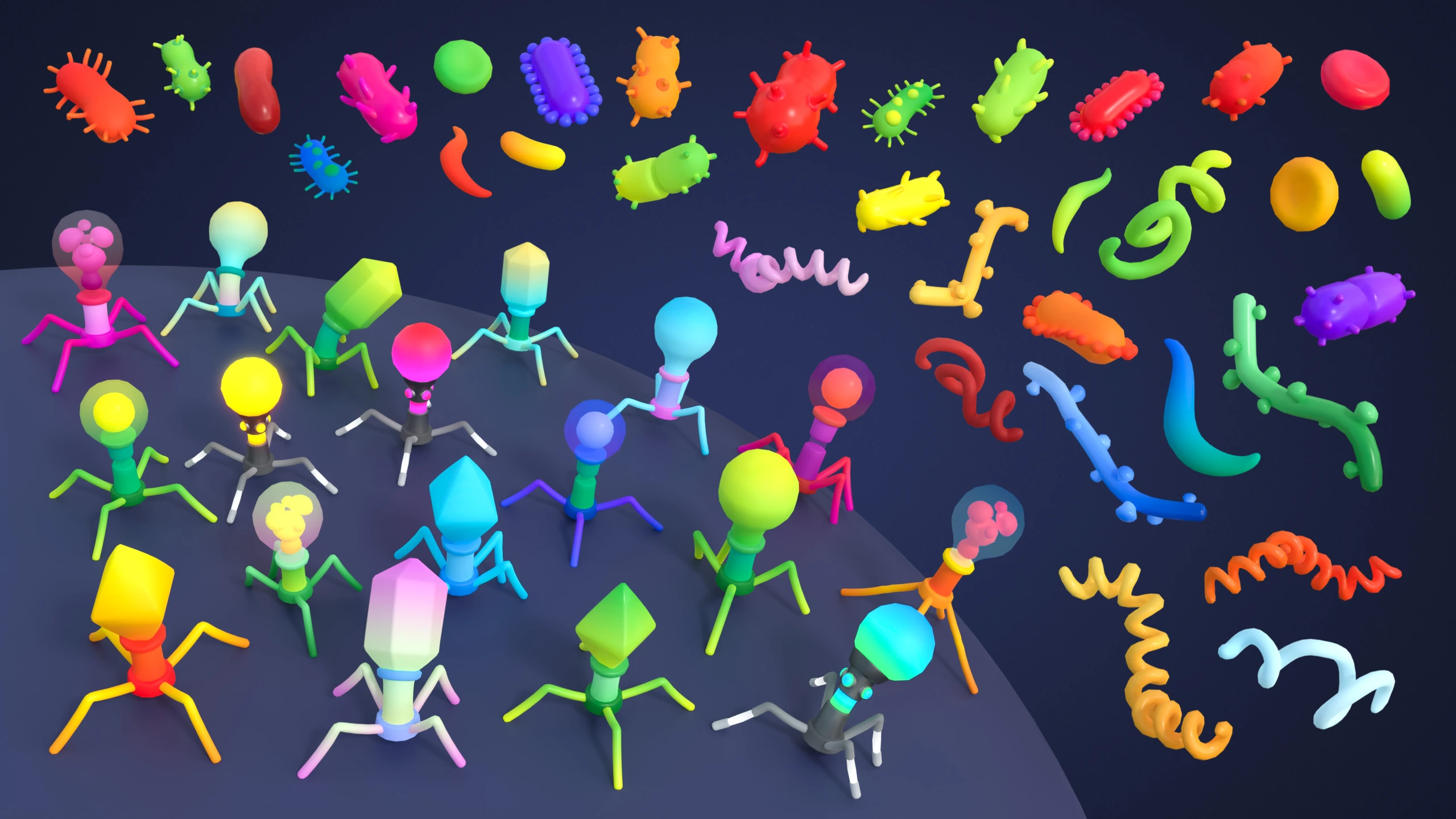Mutant forms – stylized, fictional variations of real microorganisms.