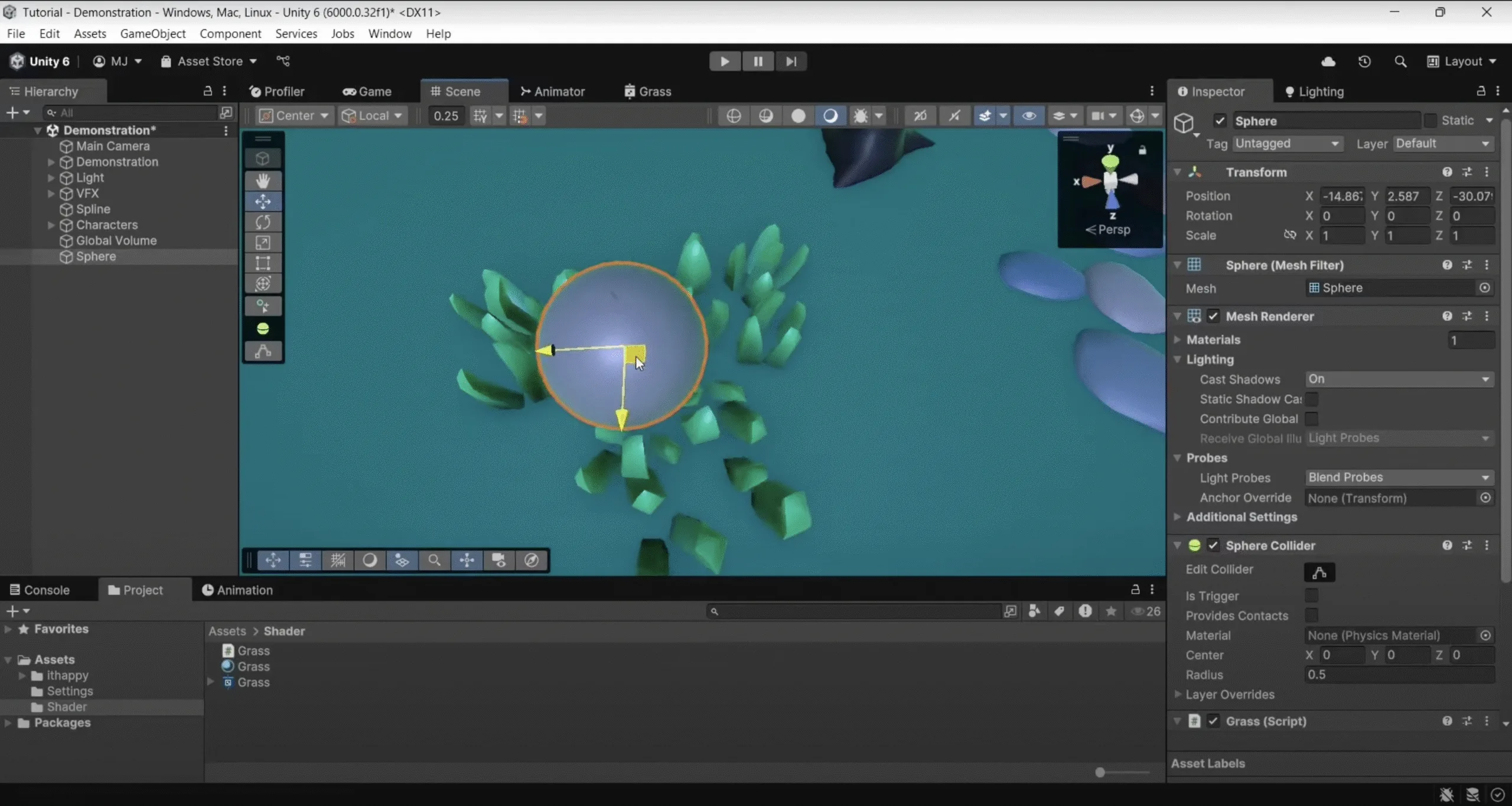 Interactive Grass is a stylized Unity shader that makes grass react dynamically to player or object movement. It uses vertex displacement to create smooth bending effects, adding realism and interactivity to natural environments.